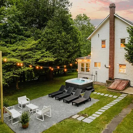 Situated a 15-minute walk from the Zane Grey Museum, Roebling House 1850S Cabin Hot Tub Fire Pit Barryville features a patio with views of the mountain. Guests can benefit from a Jacuzzi at this villa, located just near the Roebling Aqueduct Suspension Bridge.